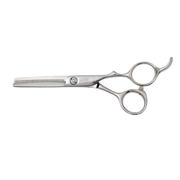 Not to be mistaken for any ordinary beginner level scissors. The Kyoto Sprint comes with clam shaped hollow ground blades for precision cutting. The forged steel offers lasting razor sharpness unrivalled in its price category. Supreme cut quality and comfortable offset handles offers outstanding value for money. Reversed blade with 40 teeth. Set Offset Blade Clam Screw Flat