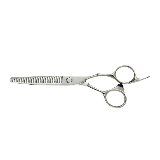 Matakki Orichi 6in Thinning Scissor has 30 individual cutting teeth that work quickly and easily to blend away cut lines and finish the hair cut perfectly.