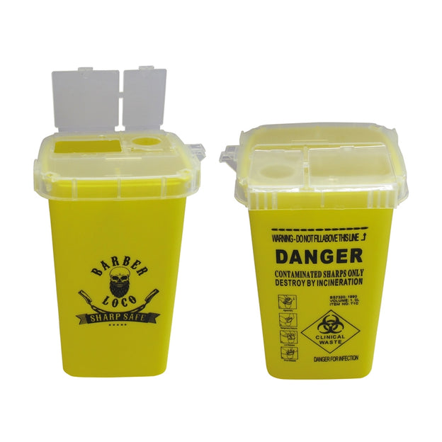 Barber Loco Sharp Safe is an essential accessory for all barber shops to ensure no cross contamination. Once the sharp safe is full it can be taken to any pharmacy, who will manage the disposal of dangerous waste.