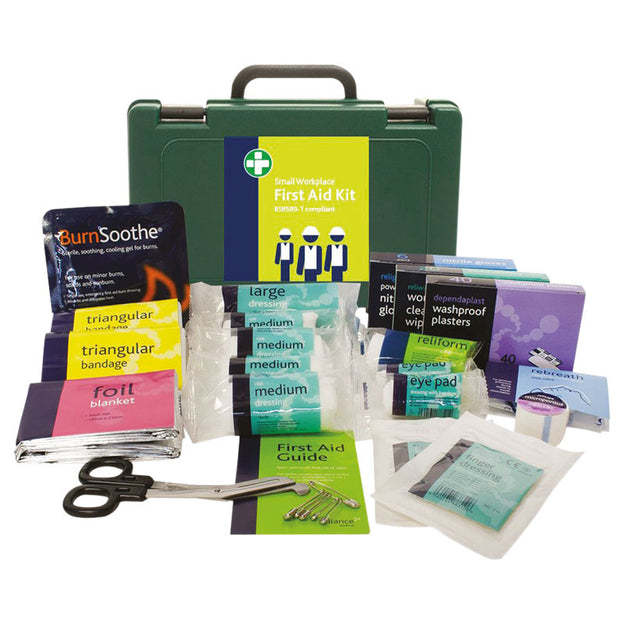 This BSI Standard Complete First-Aid Kit has become the British Standard Kits for workplaces in the UK, designed to closely reflect potential accidents. It comes complete with its own durable green first aid box with clear €˜First Aid' marking for ease of identification. It is suitable for a low risk environment where there are up to 25 employees.