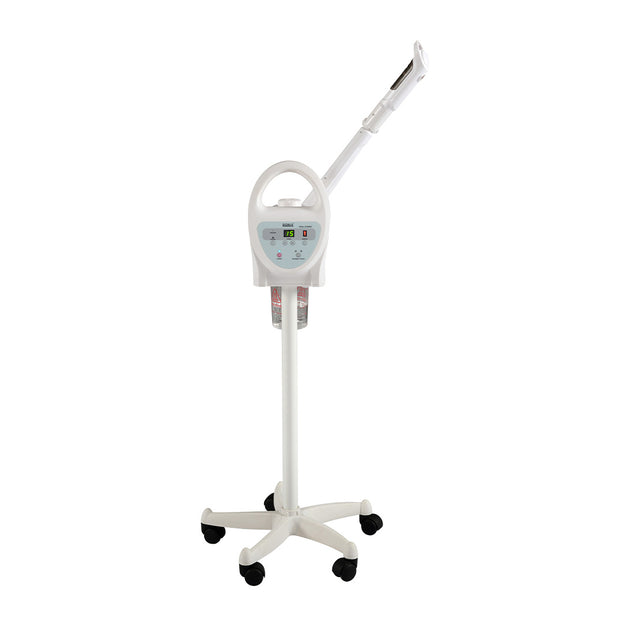 The Digital Facial Steamer has a built in UV lamp which generates ozone. Essential Oils can also be added through the top of the steam dispenser. The Digital Facial Steamer features a moveable spray arm with a rotating nozzle to reach different parts of the body.