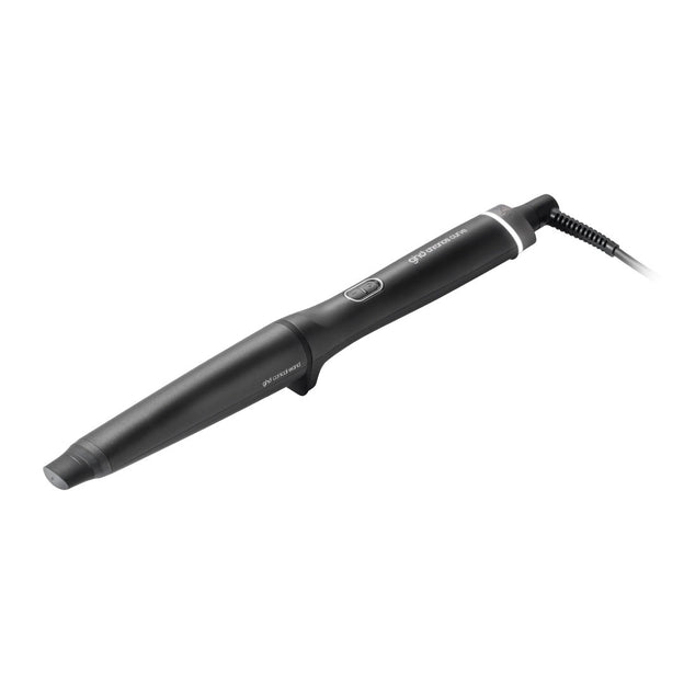 ghd Chronos Curve Conical Wand created effortlessly tousled beach curls that hold their shape. The wand has a sleek 28-23mm tapered barrel and curl responsive technology that responds to curling actioning to maintain the optimum 185°C temperature from root to tip.