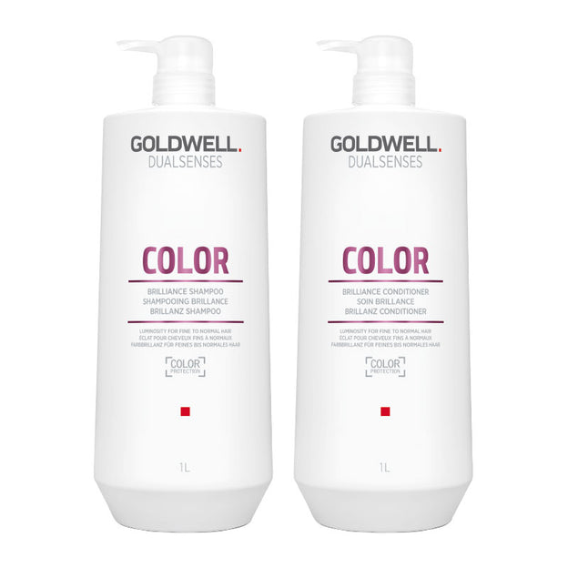 Goldwell Dualsenses Color Brilliance 1000ml Duo Pack Shampoo & Conditioner instantly brings out colour luminosity in coloured and non-coloured hair and minimise colour fading.