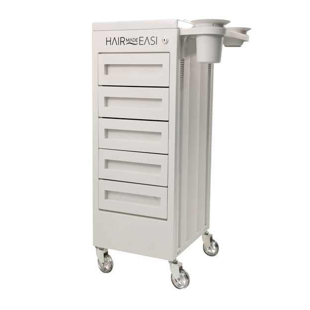 Hair Made Easi Hair Extension Trolley White is perfectly designed for all hair extension methods keeping extensions, tools and accessories organised.
