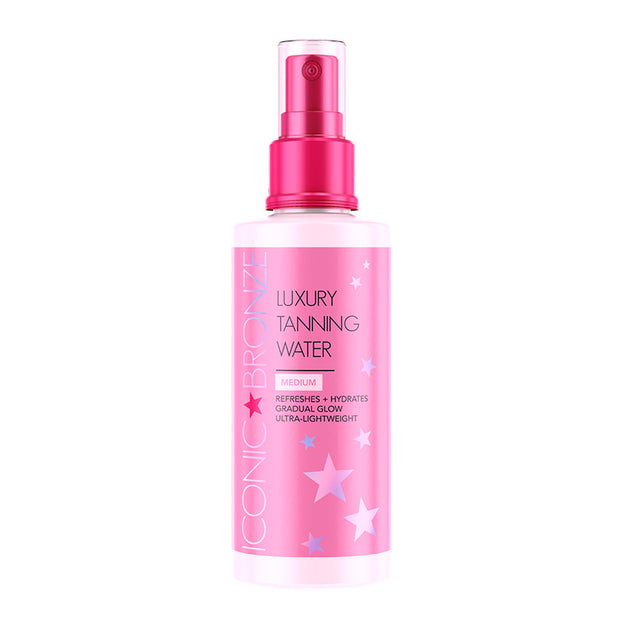 Iconic Bronze Luxury Tanning Water Medium 100ml is infused with essential vitamins that refresh and hydrate your skin while creating a beautifully healthy glow in just 2-6 hours. The weightless formula ensures that the skin stays moisturised and nourished, making it safe to use on sensitive skin types and can be used on the face and body