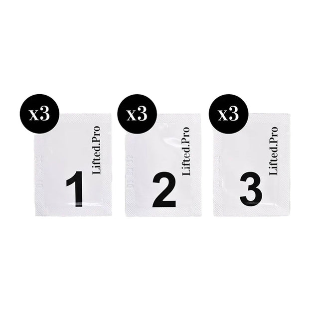 This pack contains 3 sachets of each step 1, 2 and 3 of Lifted. Pro. Each sachet can be used for up to 3 treatments (9 treatments per pack).