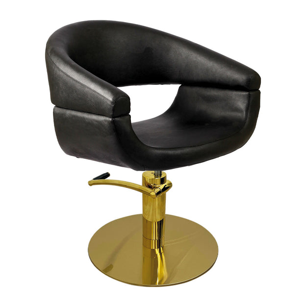 The Lotus Chicago Black Styling Chair has a soft curved design for ultimate client comfort and hard-wearing faux leather fabric, perfect for busy salons. Available in Black, with a choice of 6 customisable bases, including our 3 standard hydraulic bases - Silver Round, Square & 5-Star, or, for an additional cost, Black 5-Star, Gold Round, or Silver Motorised.
