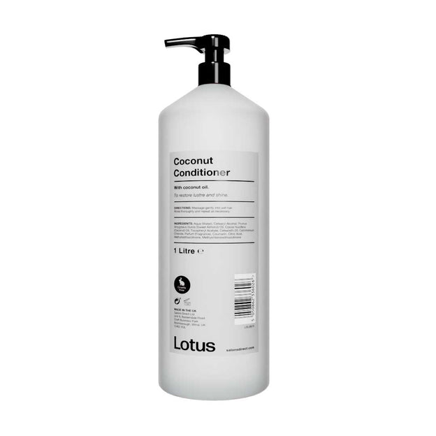 Lotus Coconut Conditioner is formulated especially for the hairdressing salon, with Coconut Oil. This key ingredient is nourishing, conditioning and moisturising, perfect for repairing dry hair while also preventing dandruff. It works to add shine to the hair by controlling frizz and strengthening it, reducing breakage.
