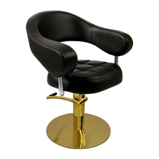 The Lotus Corby Black Styling Chair is a curved and compact styling chair with a super comfortable quilted effect padded seat. Available in Black and Brown with a choice of 6 customisable bases, including our 3 standard hydraulic bases ā Silver Round, Square & 5-Star, or, for an additional cost, Black 5-Star, Gold Round, or Silver Motorised.