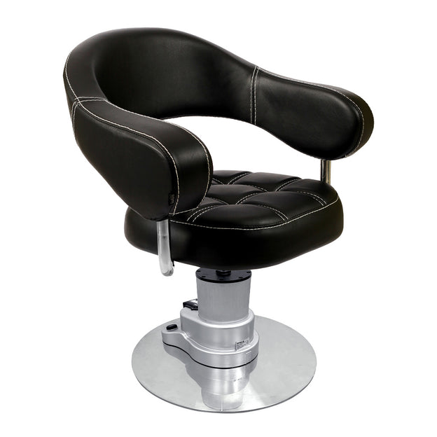 The Lotus Corby Black Styling Chair is a curved and compact styling chair with a super comfortable quilted effect padded seat. Available in Black and Brown with a choice of 6 customisable bases, including our 3 standard hydraulic bases – Silver Round, Square & 5-Star, or, for an additional cost, Black 5-Star, Gold Round, or Silver Motorised.