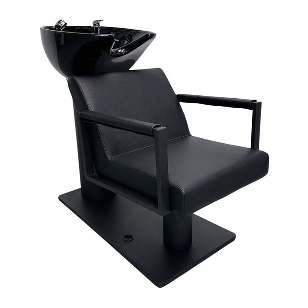 The Lotus Madrid Black Backwash Unit features a sleek black ceramic tilting basin complete with mixer valve and hand shower. Upholstered in soft black faux leather with matte black padded armrests, the Madrid delivers exceptional client comfort. Its all-black design is easy to clean and maintain, keeping your salon looking fresh and professional.