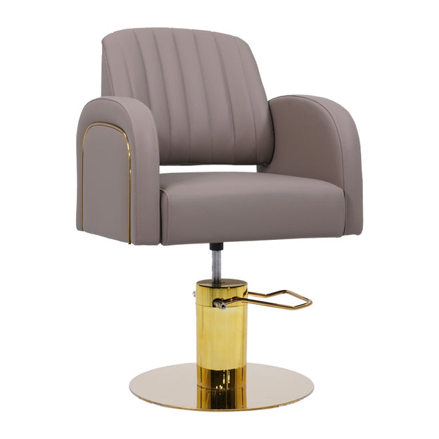 Lotus Darcy Taupe Hydraulic Styling Chair is crafted in a soft faux leather fabric with a distinctive gold trim. This chair comes complete with a reflective gold hydraulic base making it the perfect addition to modernise your salons aesthetic whilst still being practical.