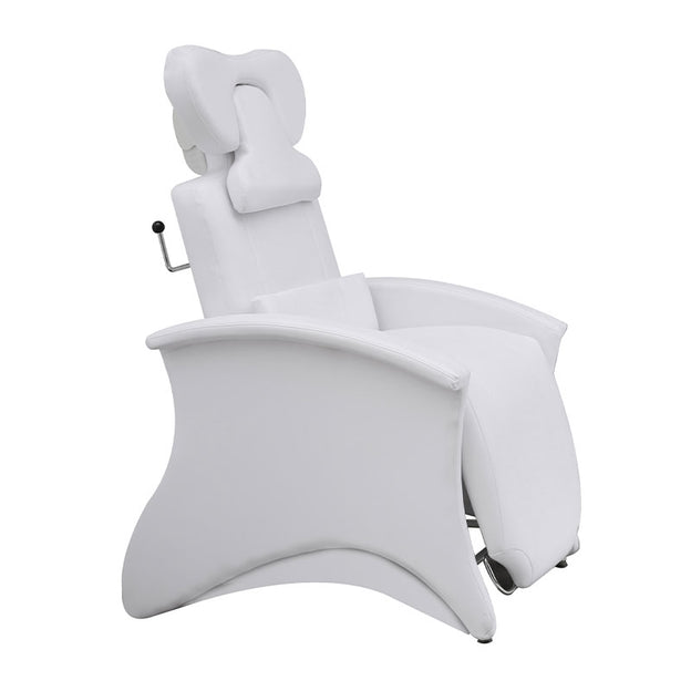 The Lotus Monroe Eyebrow/Eyelash Beauty Bed is ideal for all eyebrow and eyelash treatments including tinting, lash extensions, threading, tweezing and waxing. It features adjustable leg rest, a reclining back, removable head pillow and back cushion, discreet storage tray, faux leather and extra thick padding for optimum comfort.