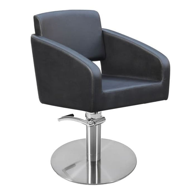 The Lotus Padstow Black Styling Chair is a generously proportioned styling chair designed for ultimate client comfort with a deep padded seat and soft faux leather fabric. Available in black with a choice of 6 customisable bases including our 3 standard hydraulic bases - Silver Round, Square & 5 star or for an additional cost in Black 5 Star, Gold Round or Silver Motorised.