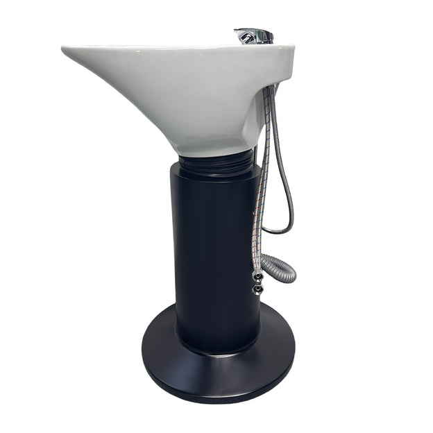 The Lotus Pedestal Backwash Unit is a compact solution for salons where space is limited. Featuring a white ceramic tilting basin complete with mixer valve and hand shower.