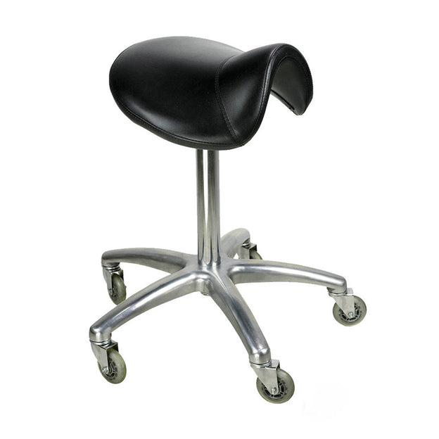 Lotus Rolling Saddle stool in black is an extremely comfortable padded cushioned seat that allows you to easily get in the right position to actioned treatments.