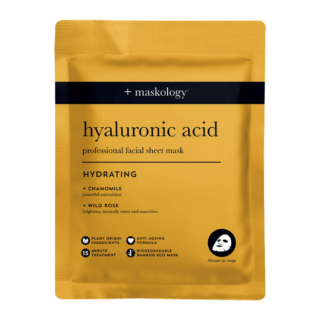 +maskology Hyaluronic Acid Face Sheet Mask 22ml intensely hydrates and nourishes the skin resulting in a moisturised, toned, and youthful looking skin.