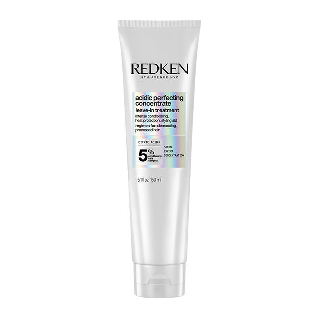 Redken Acidic Perfecting Concentrate Leave-in Treatment provides heat protection up to 230 degrees, smoothes, tames frizz, adds shine and intensely conditions to help to reduce hair breakage.