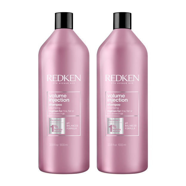 Redken's Volume Injection Shampoo 1000ml Duo is formulated with Redken's Bodifying Complex with Filloxane helps to provide instant volume to fine, flat, or processed hair.