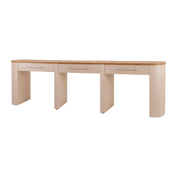 Finalise your Nail Salon Design with the beautiful, curved Capri Nail Table. Every position comes with a storage drawer and cable management ports, to keep your desk tidy. The work surface is acetone resistant.