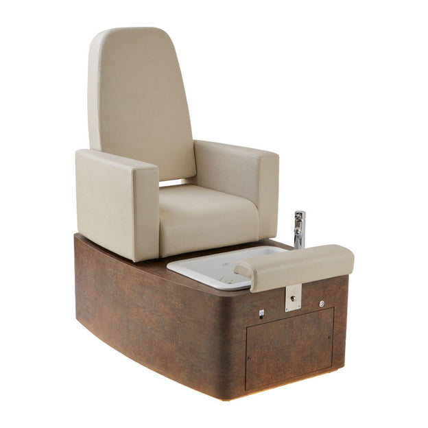 This new, top of the range unit provides style and comfort to any Spa environment. The seat swivels 90 degrees to both sides for easy client access, with the height-adjustable footrest offering extra comfort. The integrated ceramic basin has a whirlpool function, push-button waste and a one lever tap with pull out hand spray. The on and off button for the whirlpool function is located on the front of the pedicure base.