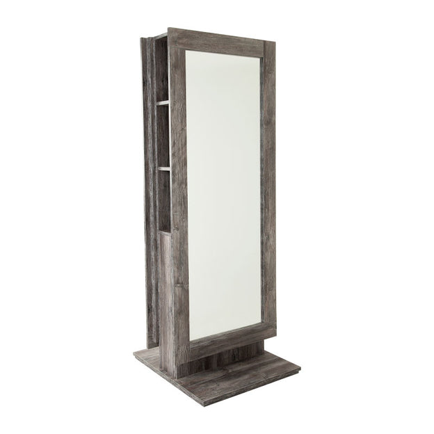 The Salons Direct Ruby Island unit has a double sided mirror to create two work stations, it is a free-standing mirror with easy to access rear storage made from durable laminate.