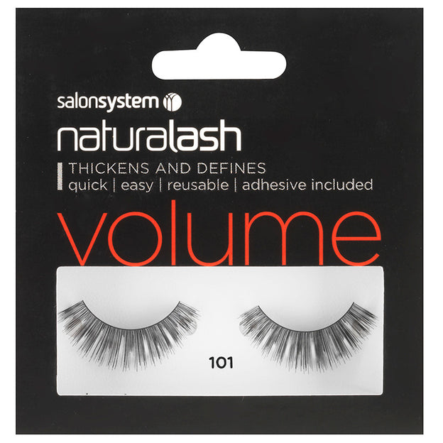 Create instant volume and length with these easy to use Salon System Naturalash Volume Strip Lashes 101. Adhesive included.