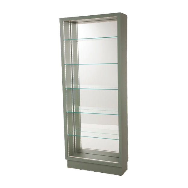 - Supplied with five height adjustable glass display shelves