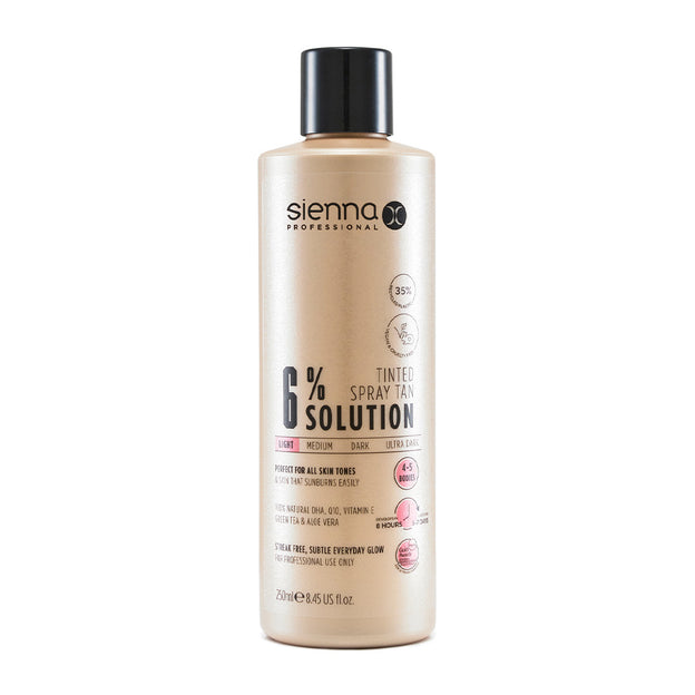 Sienna X 6% Professional Tanning Solution is ideal for subtle colour or fair skin that never tans and always burns. It has a natural long-lasting colour and a coconut fragrance.