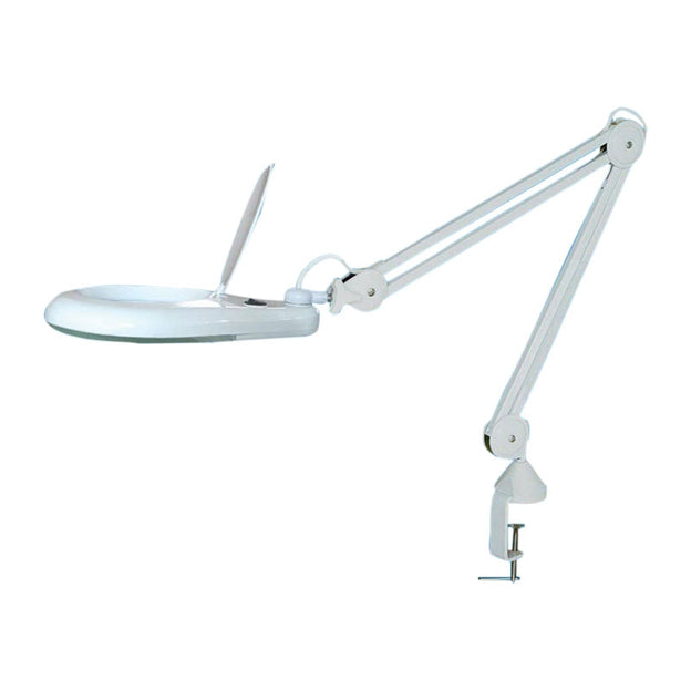 This LED cool natural light magnifying lamp with a 5-inch glass lens and cover features: