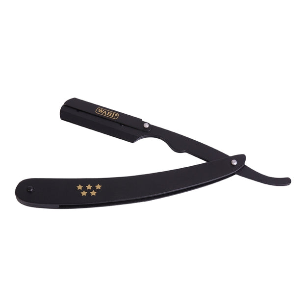 The Wahl 5 Star Shave Razor is similar to a traditional cut throat or straight edge razor but uses a disposable blade. This razor leaves a sharper and smoother finish with less irritation to the skin. Includes 10 personal disposable platinum blades and a stylish storage case.