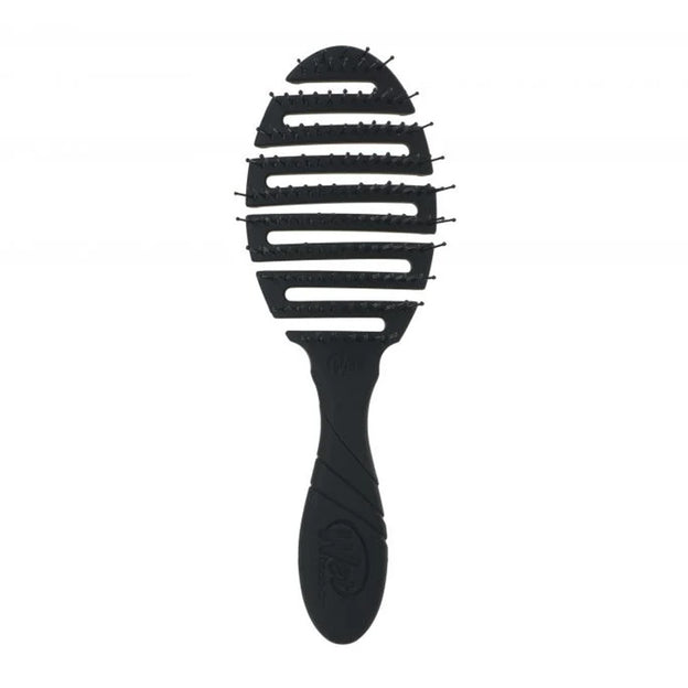 Wetbrush Flex Dry in black features HeatFlex ™ heat resistant bristles which gently detangle while blow-drying.
